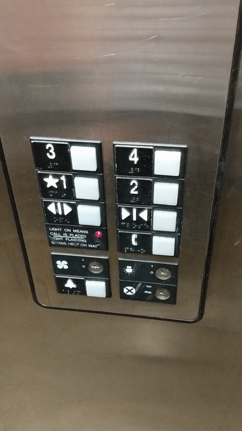 - The buttons indicating the floors are not arranged intuitively and the user must look and actively find the correct button instead of their eyes naturally being drawn to the desired button.